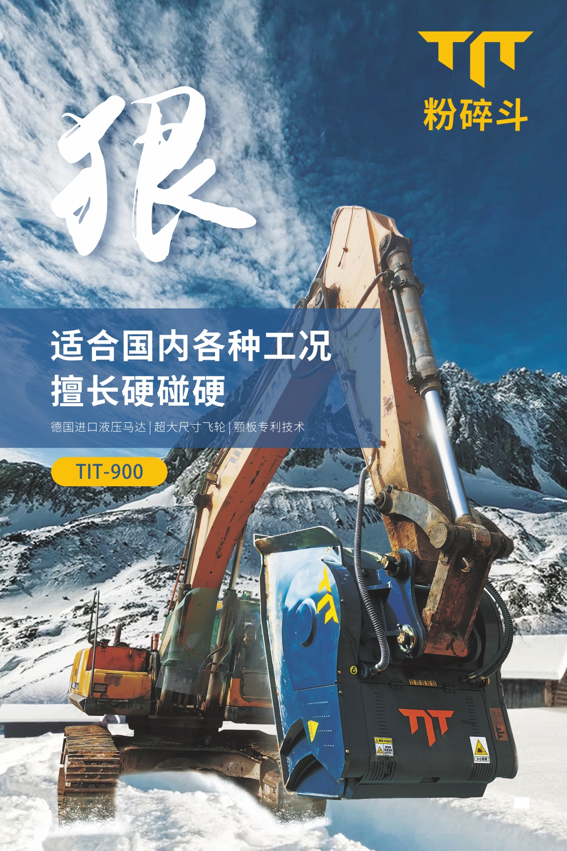 TIT,源自Titan的縮寫,原指古希臘神話中力大無窮的威猛之神,借意本產品剛勁有力,產能高效。TIT粉碎斗,也稱破碎斗,顎式破碎斗,是一款創新型挖掘機屬具,掛于挖掘機大臂上,可快速將工程惰性材料破碎成極具價值的工程用料。隨著國內基建行業展,基于市場對經濟化、效率化、環保化材料的大量需求,破碎斗將廣泛應用于多種物料破碎場景。 |